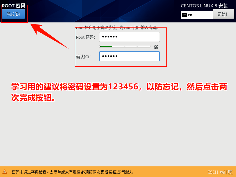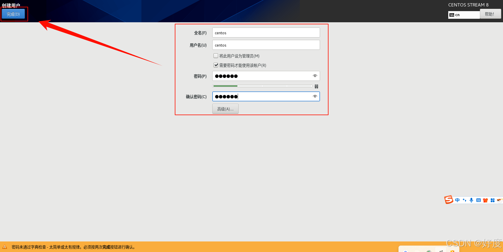 用户名和密码可以自己随你设置,建议将密码设置简单些,比如123456,然后点击两次完成按钮