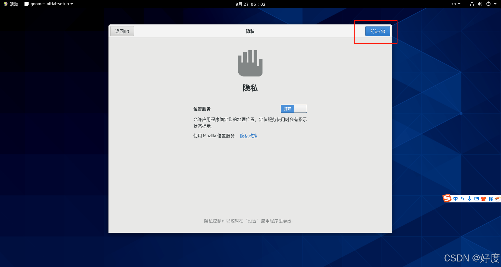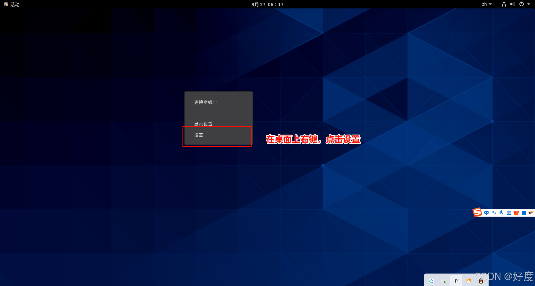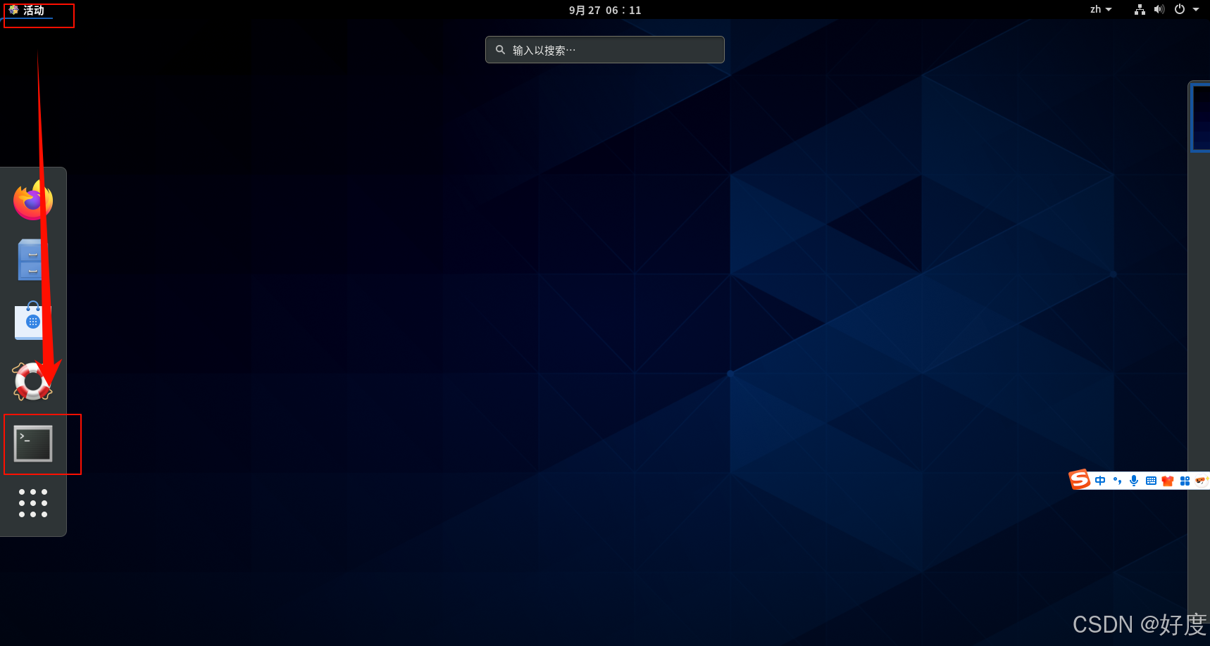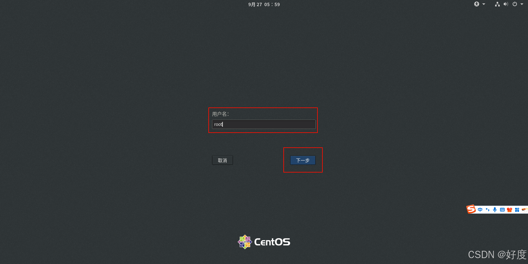 系统默认是普通用户登录的,这里建议使用root账号登录,防止后续操作被限制权限