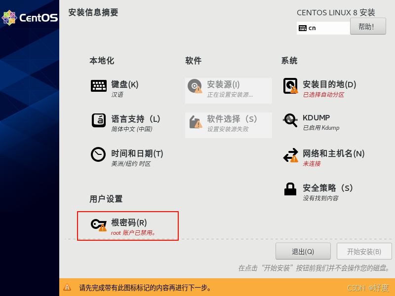 先配置root用户,给管理员配置密码,这里密码必须记住,后续用用到,忘了会很麻烦。