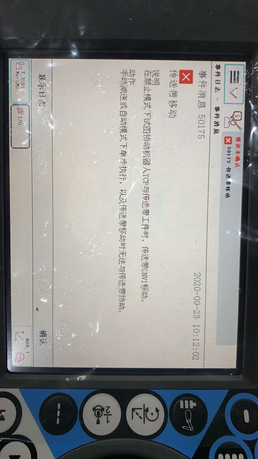 这个问题大多是机器人速度跟不上输送链速度而导致的报错,解决方法为使用手动全速和自动运行程序,可以在输送带动起来后观察C1speed这个模拟量的值(单位为m/s)对比程序运行速度;