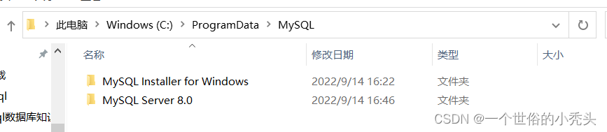 3、找到C盘目录下的ProgramData下Mysql的相关数据库信息