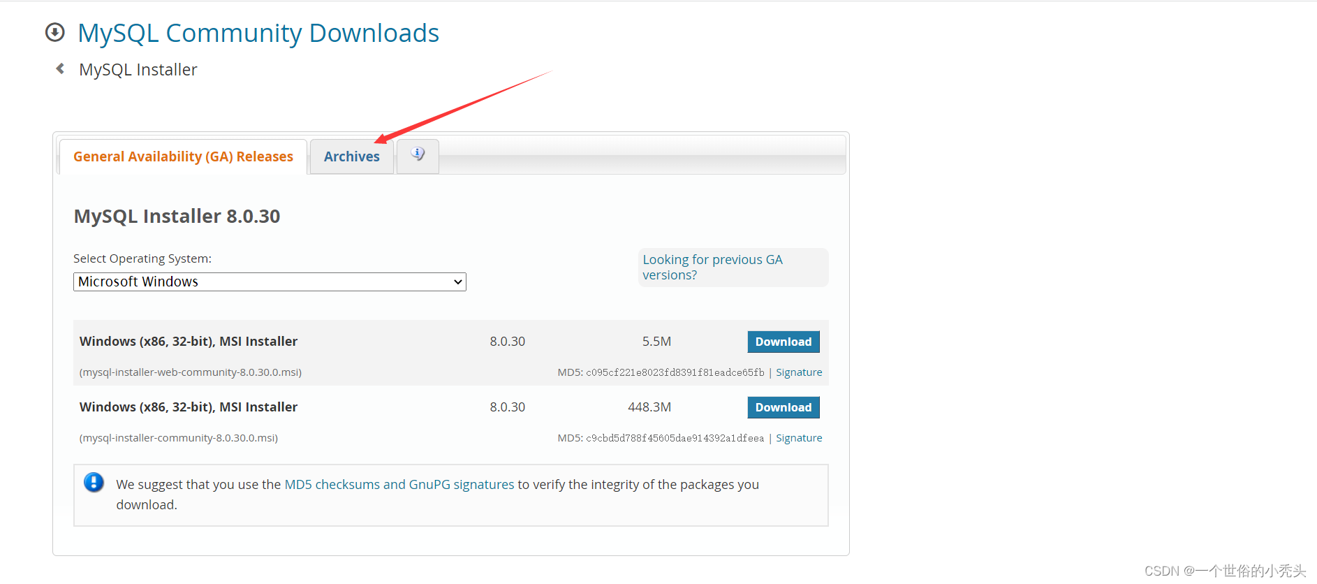 5)如果说要安装其他版本,点击如下“Archives”,可以选择对应下载版本