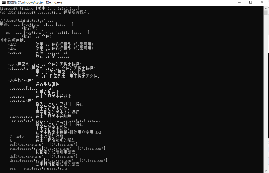回车键能看到下图的窗口内容,说明你jdk配置成功了!(如果不行请检查环境变量,再重复此步骤,需要重新打开dos窗口)
