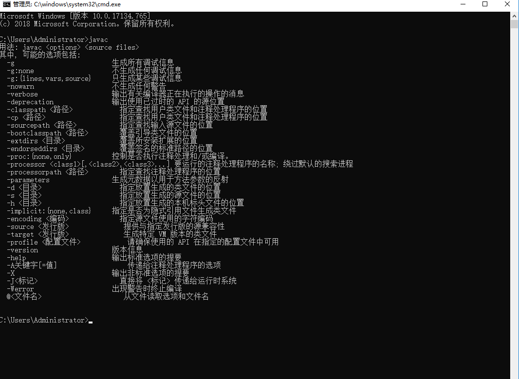 ②验证是否安装成功:win+R 输入 cmd,在黑色框框dos命令中分别输入:java -version、java、javac
