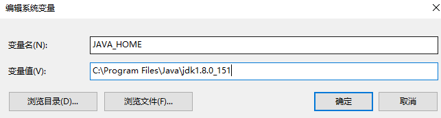 ①系统变量新建:JAVA_HOME 变量值 填写安装的路径如我的:jdk1.8.0_151(可以复制路径过来,win10可以直接浏览目录)