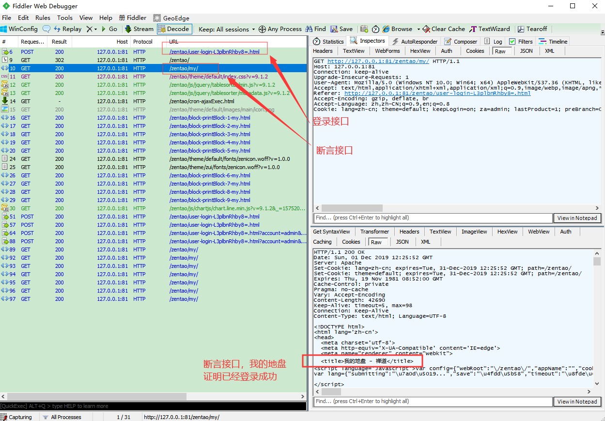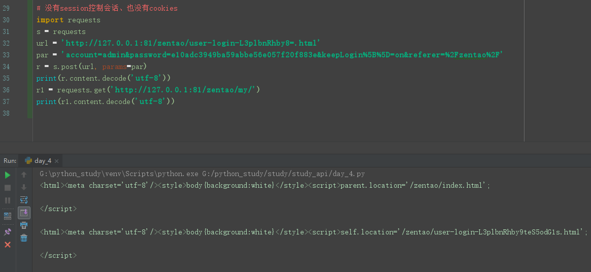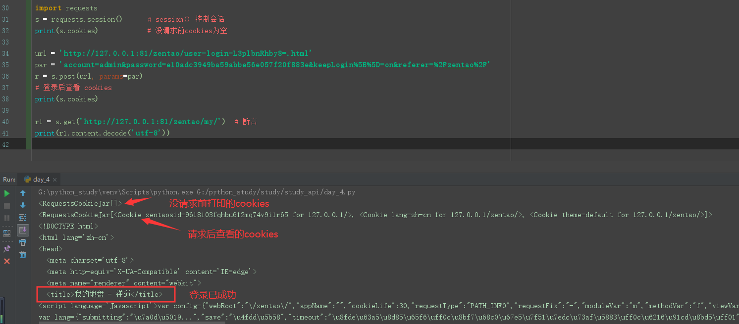 r1 = s.get('http://127.0.0.1:81/zentao/my/') # 断言
