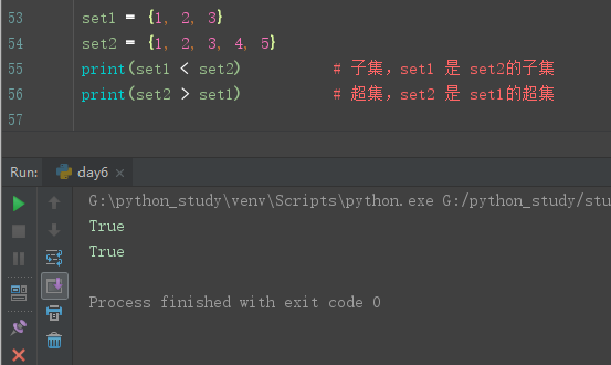 print(set1 < set2) # 子集,set1 是 set2的子集