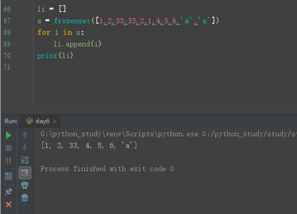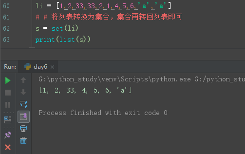 3、有个需求将列表的数据去重,不改变原来的类型。(PS:1.二次转换;2.frozenset)