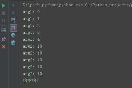 from multiprocessing import Process import time def func(arg1,arg2): print('arg1:',arg1) time.sleep(0.1) print('arg2:',arg2) if __name__ == '__main__': p_list=[] for i in range(5): # 异步多个子进程执行 p = Process(target=func, args=(1*i, 10)) p_list.append(p) p.start() [p.join() for p in p_list] # 必须执行完多个子进程后,再执行下面的代码。 print('哈哈哈!')