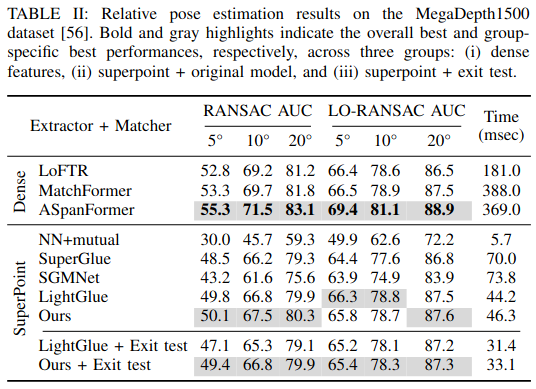 深度置信分数回归器:与LightGlue基本一致,支持提前退出和特征点剪枝。