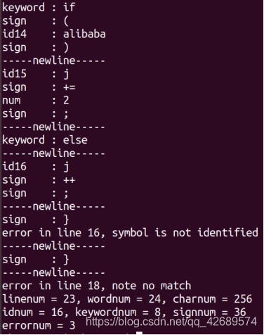 (3)可以统计源程序中的语句行数、各类单词的个数、以及字符总数,并输出统计结果。