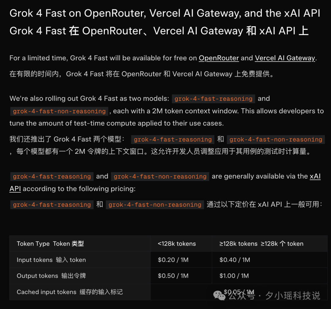 而且,xAI 还送上了一个福利:Grok 4 Fast 的 API 将在 OpenRouter 和 Vercel AI Gateway 上限时免费提供。 感兴趣的开发者家人们,可以冲了!