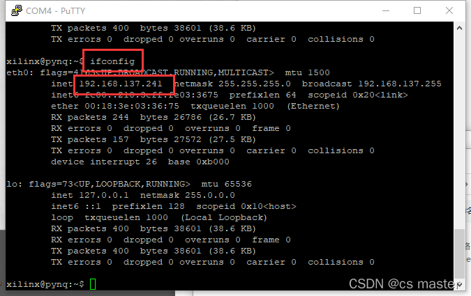 注:我的网络连接方式为电脑端usb口连接无线网卡,网线口直接连接pynq。