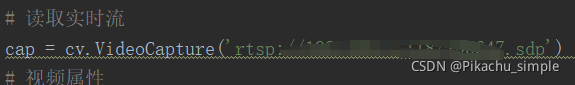 cap = cv.VideoCapture('rtsp://192.168.1.118/190647.sdp') #此处写easypusher在easydarwin的播放地址