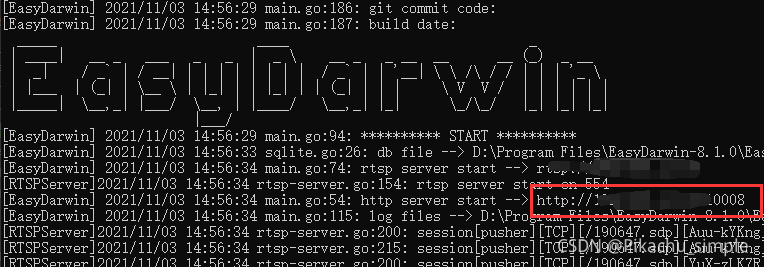 下载解压后,点击EasyDarwin.exe,复制地址到浏览器中