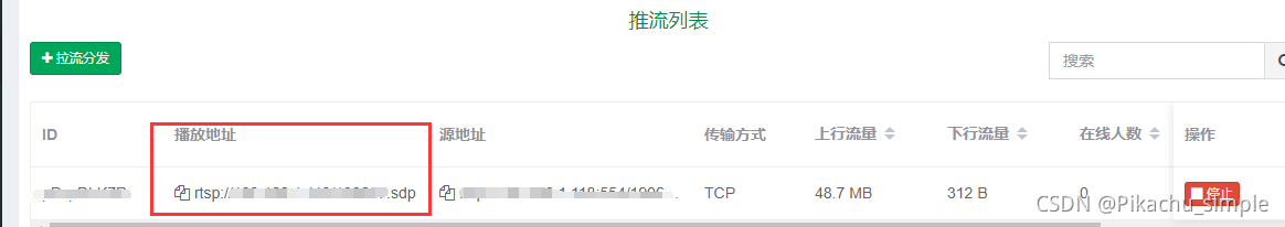复制推流的播放地址到easyplayer中:rtsp://localhost/test