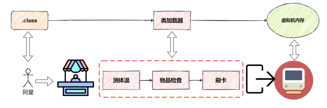 其实类加载器和日常生活中坐地铁过安检是一样的道理,不信你看下面的图