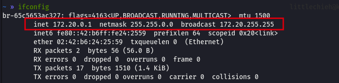 使用 ifconfig 命令可以看到 mongo 启动的主机和宿主机位于同一个局域网。