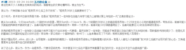 在以前博客园的一篇文章中,讲到了奔三程序员的困惑,大致说的是三十岁之后程序员要转行之类的云云,在博文中留下了如下的评论: