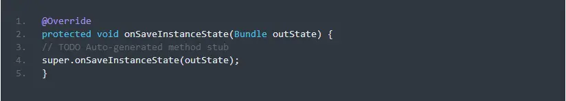 为 了 避 免 此 种 情 况 的 发 生 , 我 们 可 以 覆 写 onSaveInstanceState() 方 法 。