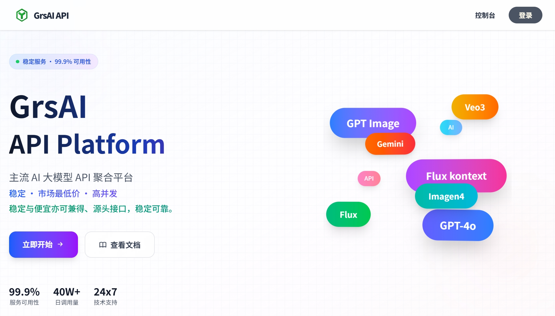 所以更多的企业或者个人独立开发者,会选择使用第三方的 AI大模型API聚合平台。这种第三方API平台利用高性价比吸引企业和开发者,能够让企业使用最低的成本创造更高的利润,提高了整个ROI。