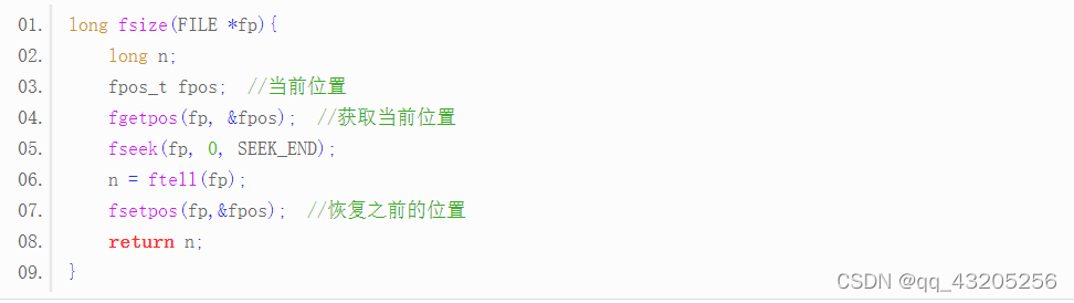 实际开发中,有时候需要先获取文件大小再进行下一步操作。C语言没有提供获取文件大小的函数,要想实现该功能,必须自己编写函数。