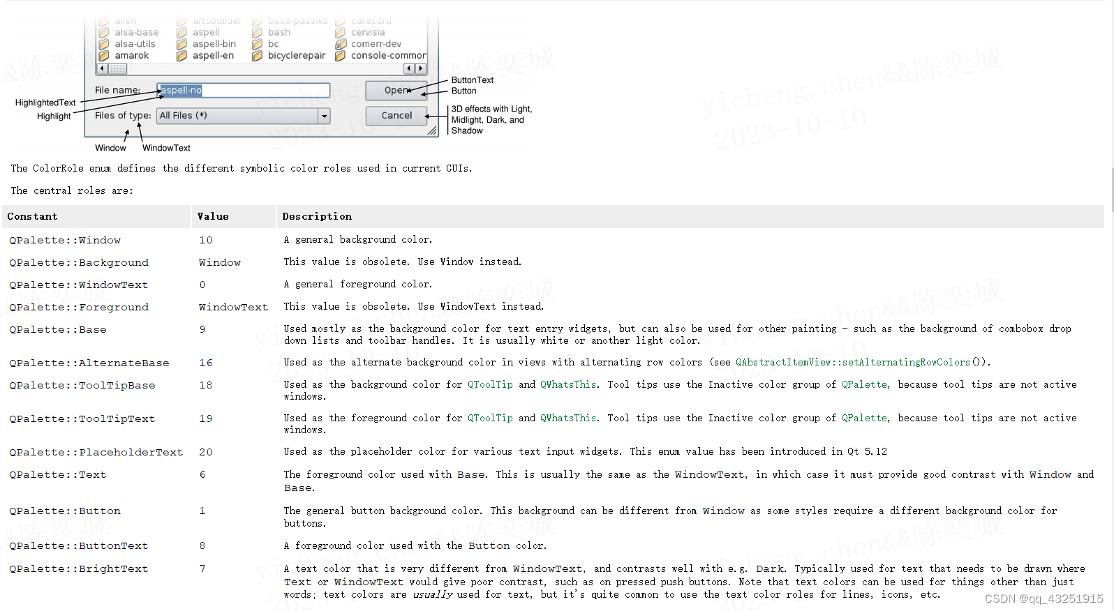 2.ColorRole 定义当前gui中使用的不同控件颜色背景。