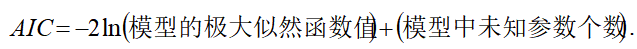 本次模型建立选择使AIC函数达到最小的模型被认为是最优模型,其中AIC函数是拟合精度和参数个数的加权函数: