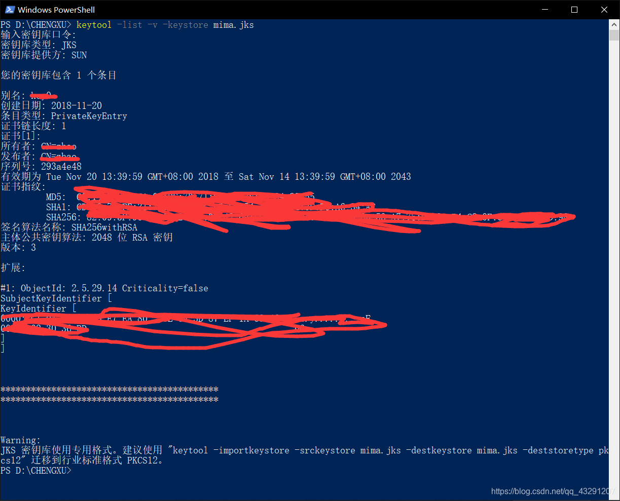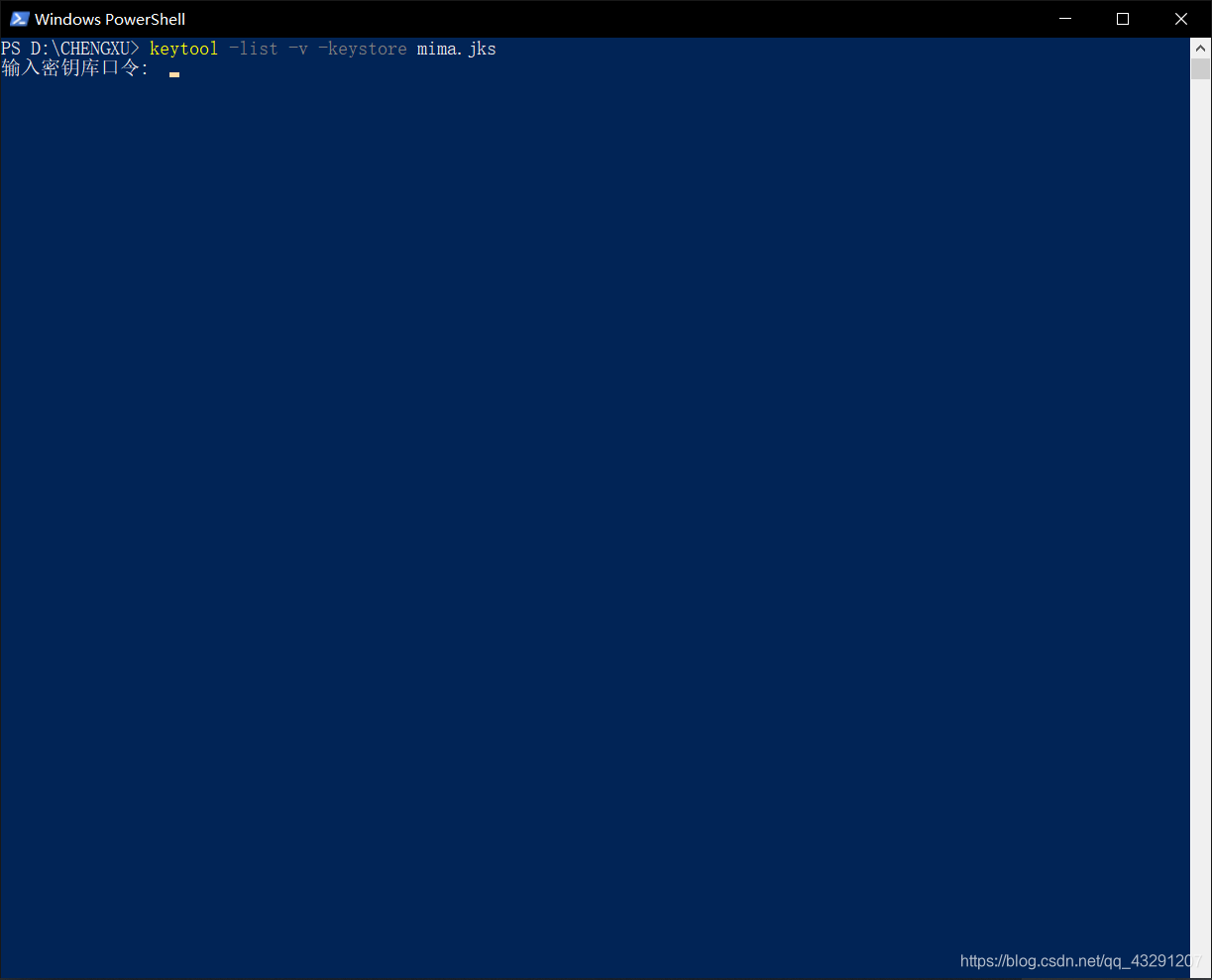 点击shell窗口,打开此处命令行:输入keytool -list -v -keystore 和自己的.jks文件全名。如下图。