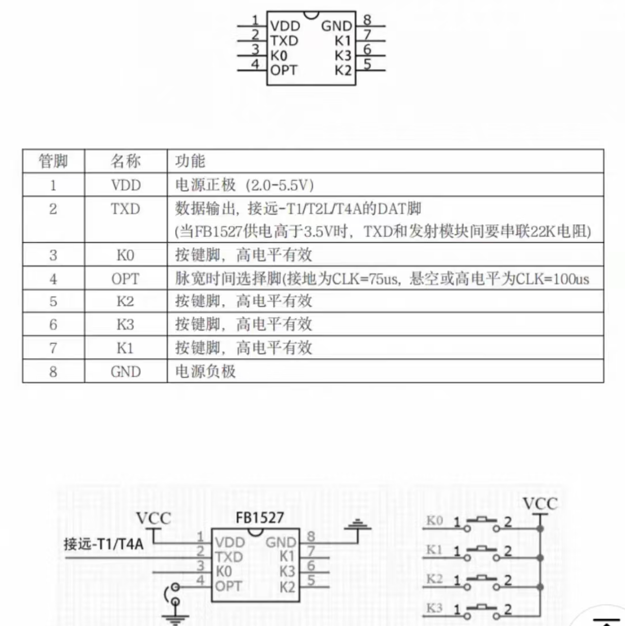 文中使用 FB1527 编码芯片实现发射端的编码;