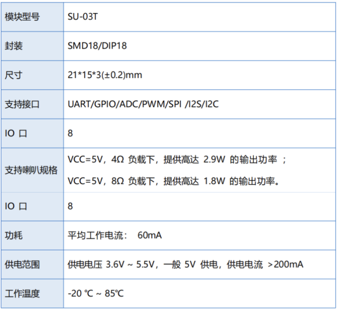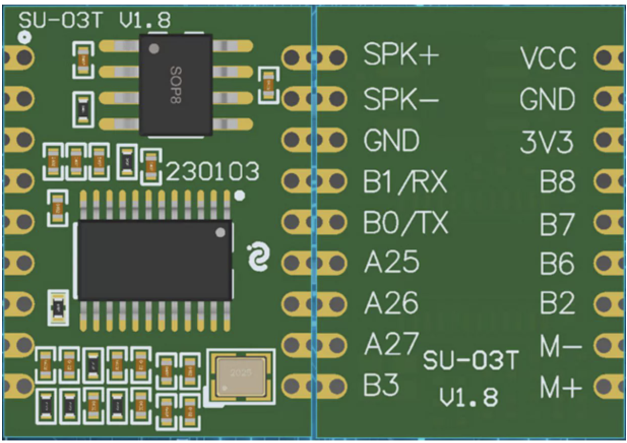 SU-03T离线语音模组是一种基于数字信号处理技术的硬件设备,具有自然语言语音识别、文本转语音合成等功能。它不依赖于云端服务,而是直接在设备上进行语音识别和合成,在响应速度、稳定性和安全性方面具有优势,适用于各种智能音箱、智能家居、智能硬件、车载导航等场景。
