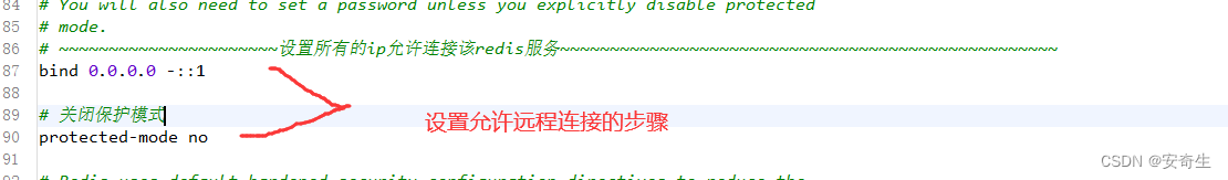 | protected-mode | yes 、no | 保护模式,该模式控制外部网是否可以连接redis服务,默认是yes,所以默认我们外网是无法访问的,如需外网连接rendis服务则需要将此属性改为no。 |