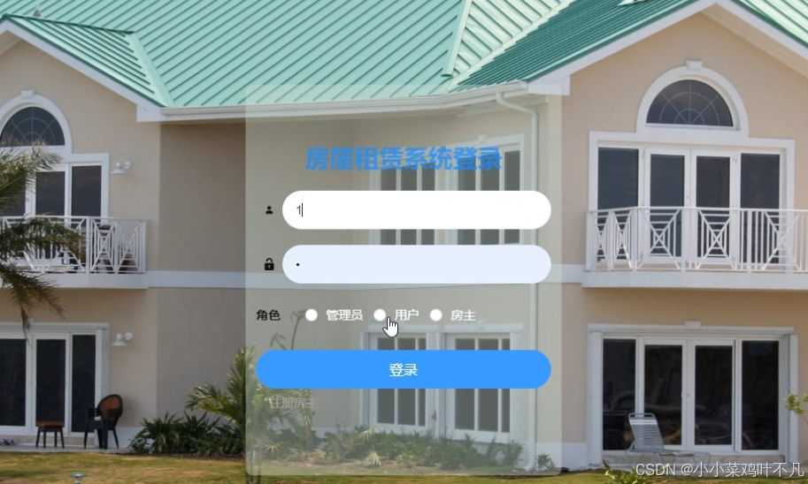 房主通过填写用户名、密码、选择权限进行登录,进入后台系统,如图5-8所示。