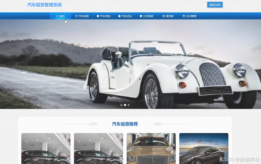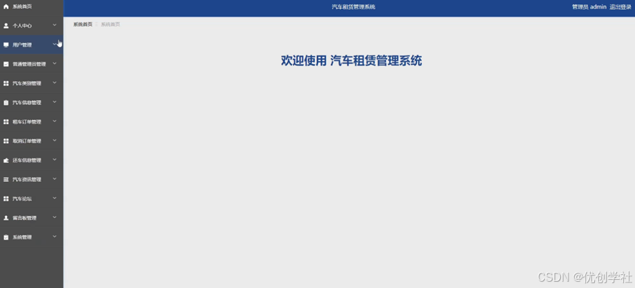 快速发展的社会中,人们的生活水平都在提高,生活节奏也在逐渐加快。为了节省时间和提高工作效率,越来越多的人选择利用互联网进行线上打理各种事务,通过线上管理汽车租赁的方式出现。与此同时,人们开始接受方便的生活方式。他们不仅希望页面简单大方,还希望操作方便,可以快速锁定他们需要的汽车租赁管理方式。基于这种情况,我们需要这样一个界面简单大方、功能齐全的系统来解决用户问题,满足用户需求。