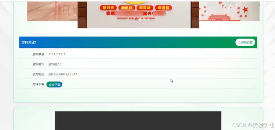党建学习:在党建学习页面的输入栏中输入资料名称进行查询,可以查看到党建学习详细信息,党建学习页面如图5-3所示: