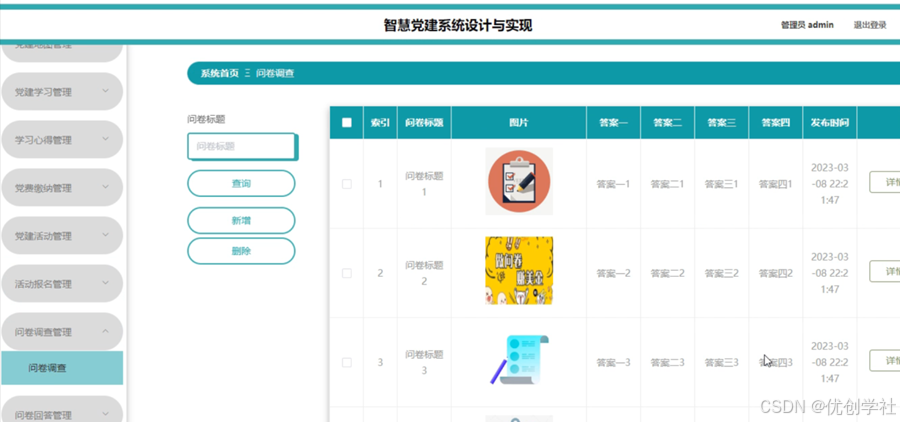 图5-17问卷调查管理界面
