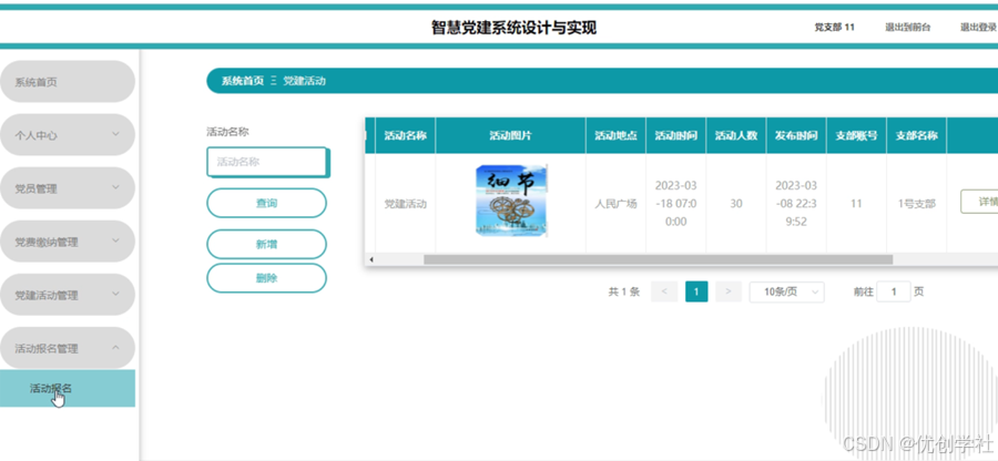 图5-19党建活动管理界面