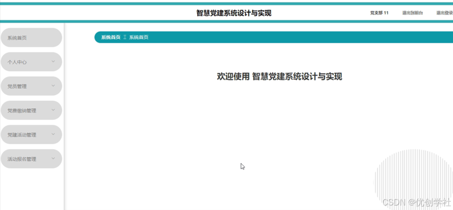 - 党支部主要对个人中心、党员管理、党费缴纳管理、党建活动管理、活动报名管理等功能进行管理。