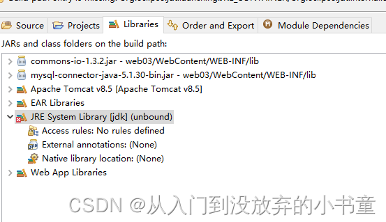 我查看了一下,在我的工程的属性里面的jre报了错,作为新手的我就remove 然后 add libraries就OK了
