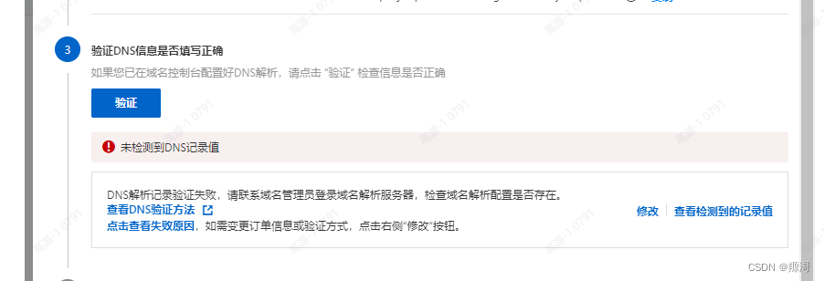 - 验证DNS,这个看提示进行。