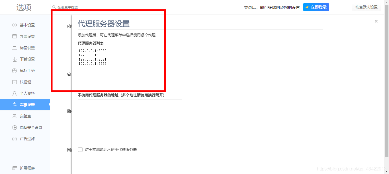2、设置浏览器代理,端口8080,也可自定义