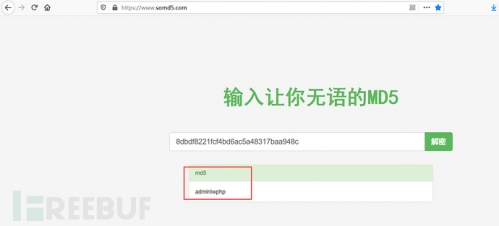 通常数据库的密码为md5加密,我们可以放在网上的在线md5解密网站进行解密
