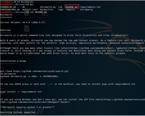 在kali上的dirsearch目录下的README.md文件也有使用方法