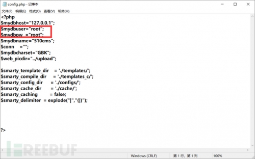 config.php为网站的配置文件,里面存放连接数据库的主机的ip、user、password、数据库名等敏感信息