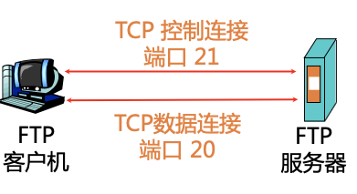 - FTP客户首先发起建立1个与FTP服务器端口号21之间的TCP控制连接, 指定TCP作为传输层协议