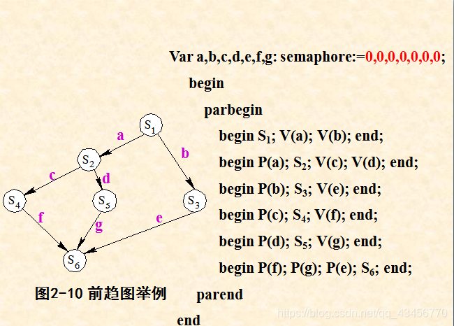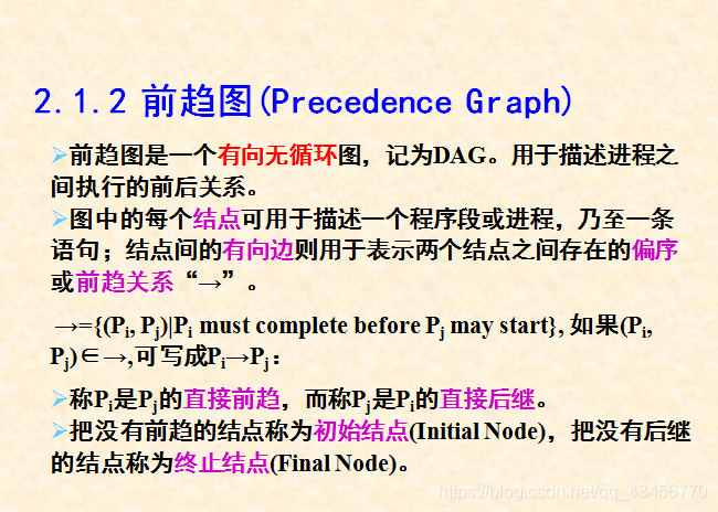 前趋图(Precedence Graph)是一个有向无循环图,记为DAG(Directed Acyclic Graph),用于描述进程之间执行的前后关系。