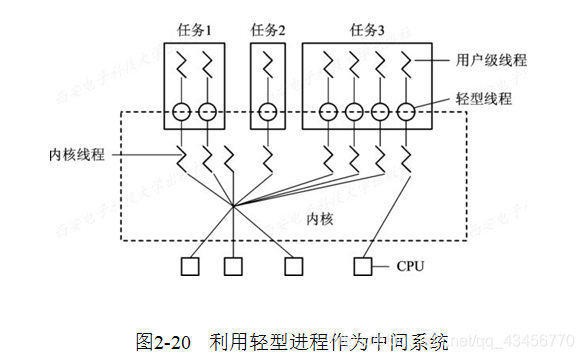 (2)内核支持线程:在内核支持下运行的线程。无论是用户进程中的线程,还是系统进程中的线程,其创建、撤销和切换等都是依靠内核,在内核空间中实现的。在内核空间里还为每个内核支持线程设置了线程控制块,内核根据该控制块感知某线程的存在并实施控制。