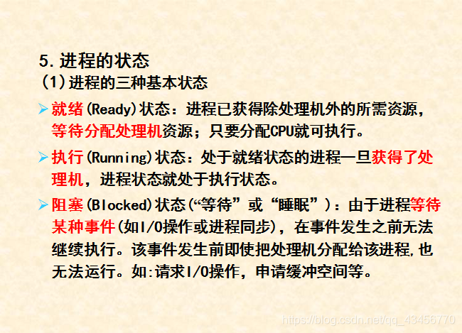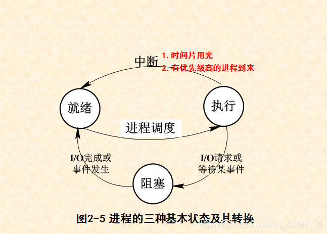 14.试说明进程在三个基本状态之间转换的典型原因。