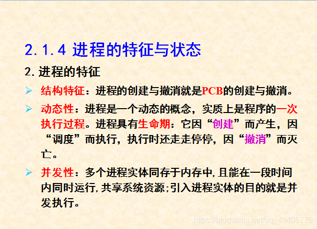 (2)并发性是进程的重要特征,同时也是OS 的重要特征。引入进程的目的正是为了使其程序能和其它进程的程序并发执行,而程序是不能并发执行的。