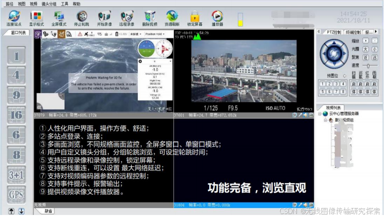 这是无线图传的 “中间链路”,也是最关键的环节,核心是选择稳定的无线信道,并通过技术手段抵御干扰。目前主流的无线信道包括 5G/4G 公网、WiFi、专网(如 400M/1.4G/1.8G 定制专网),不同信道适配不同场景: